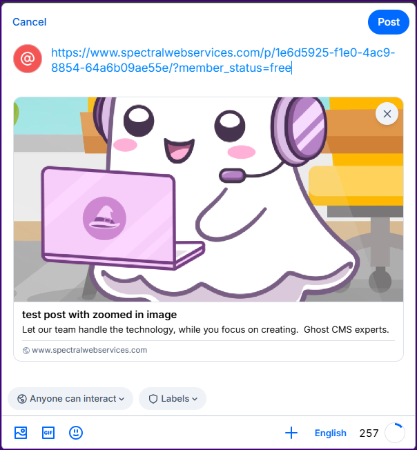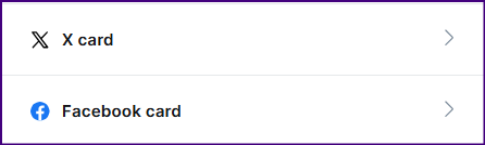 With the post open in the editor, click the "post settings" button (top right corner). Scroll down to the X card and Facebook card.